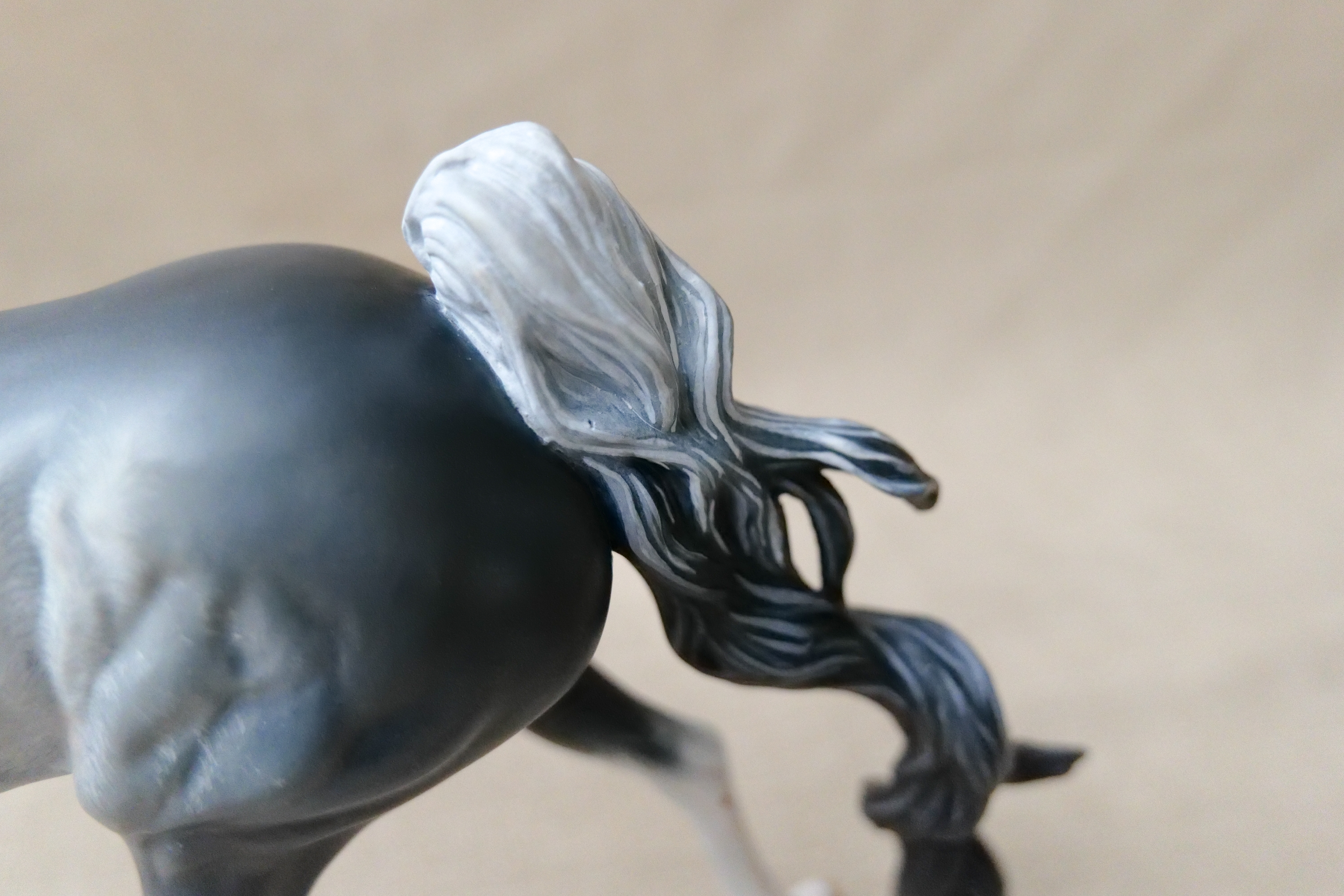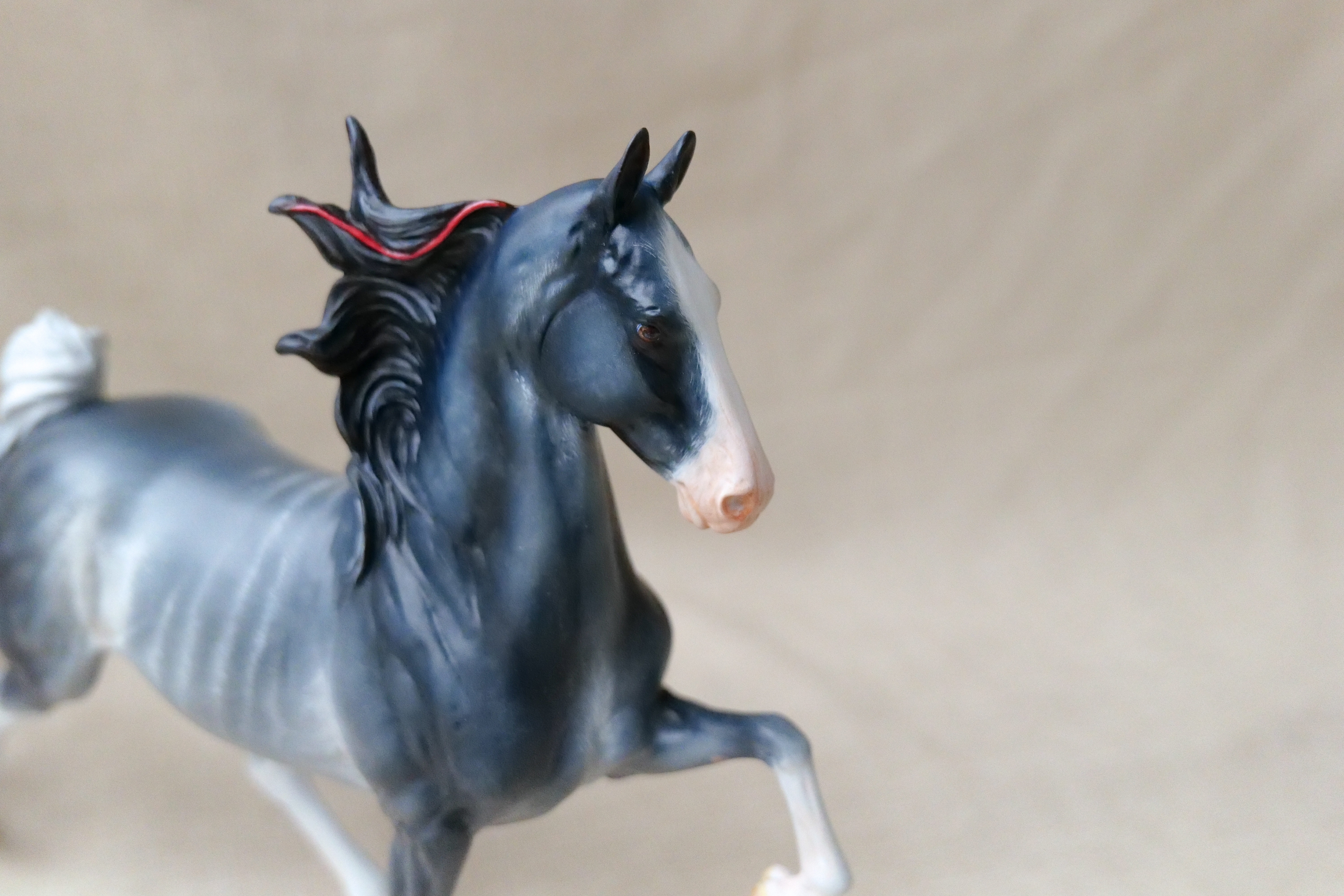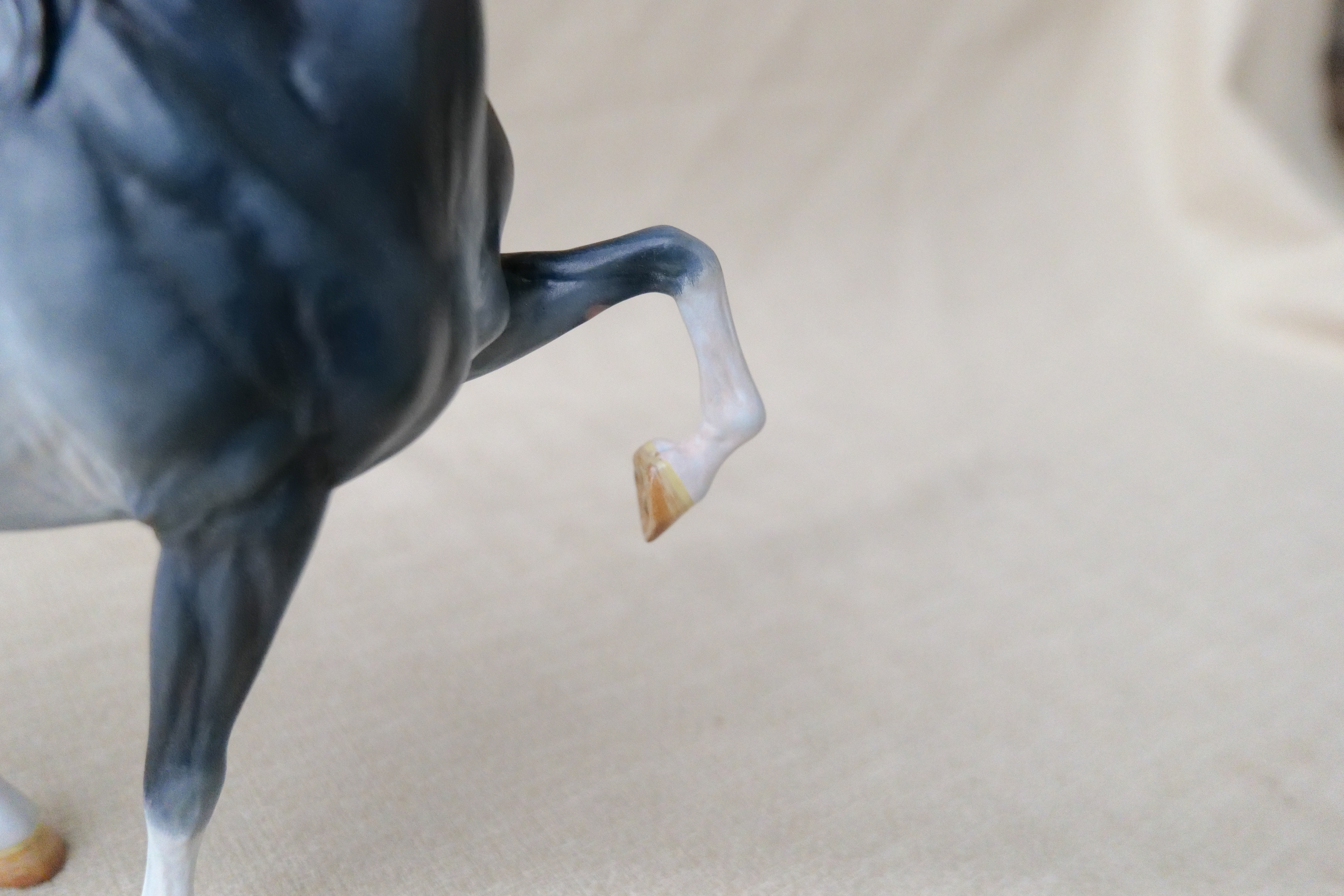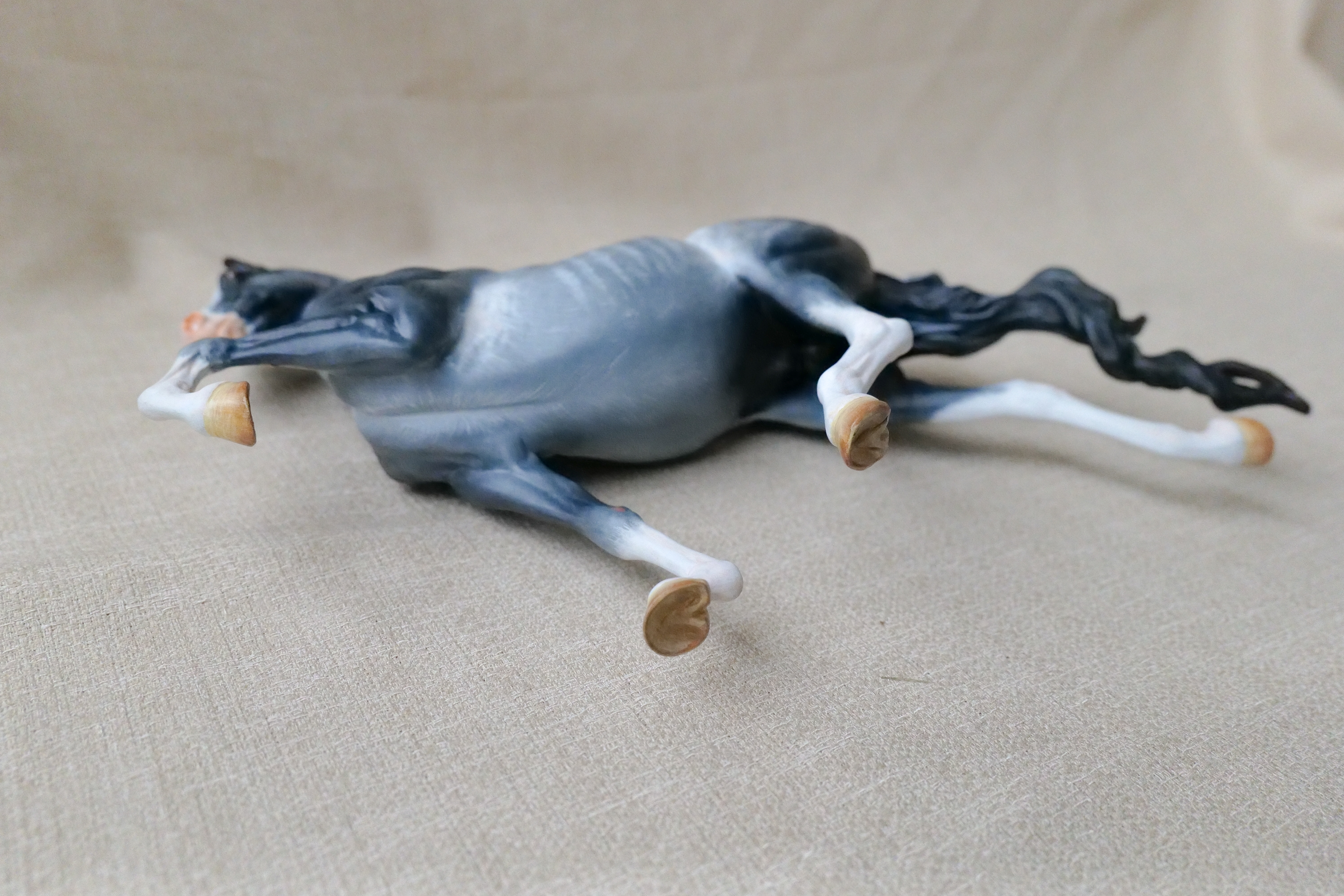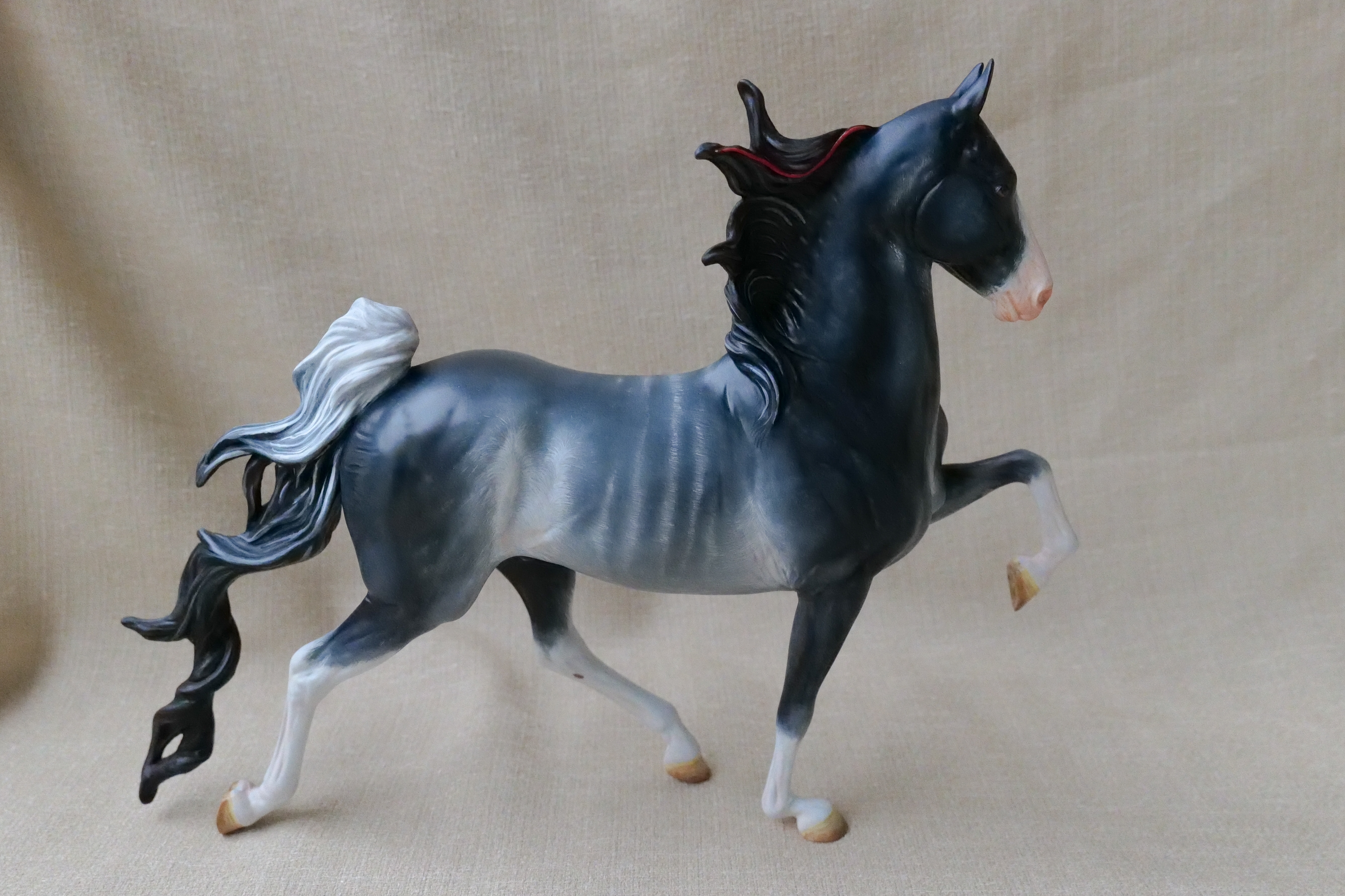 This Breyer custom started out as a Traditional size Marc of Charm and was repainted to a detailed Rabicano.