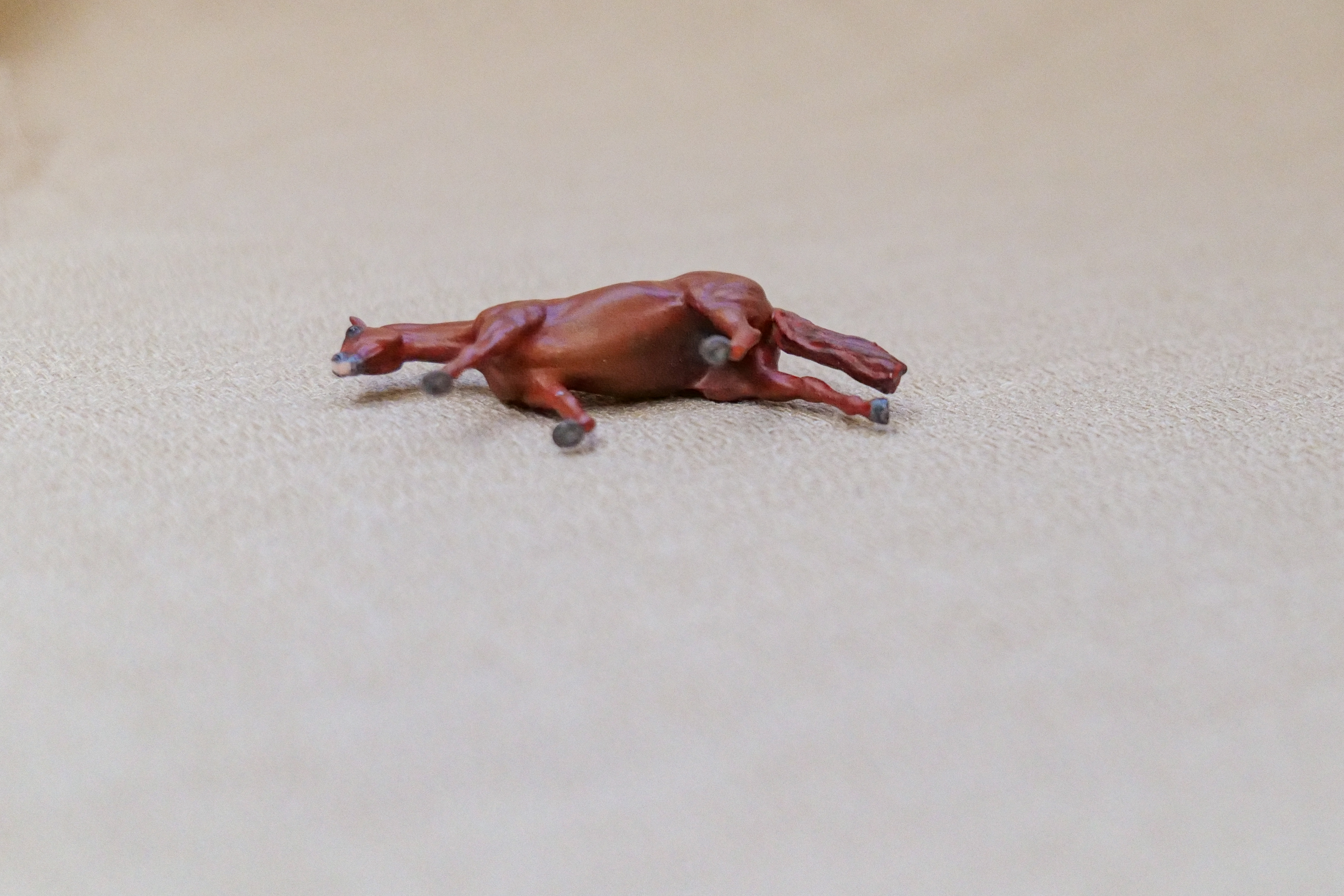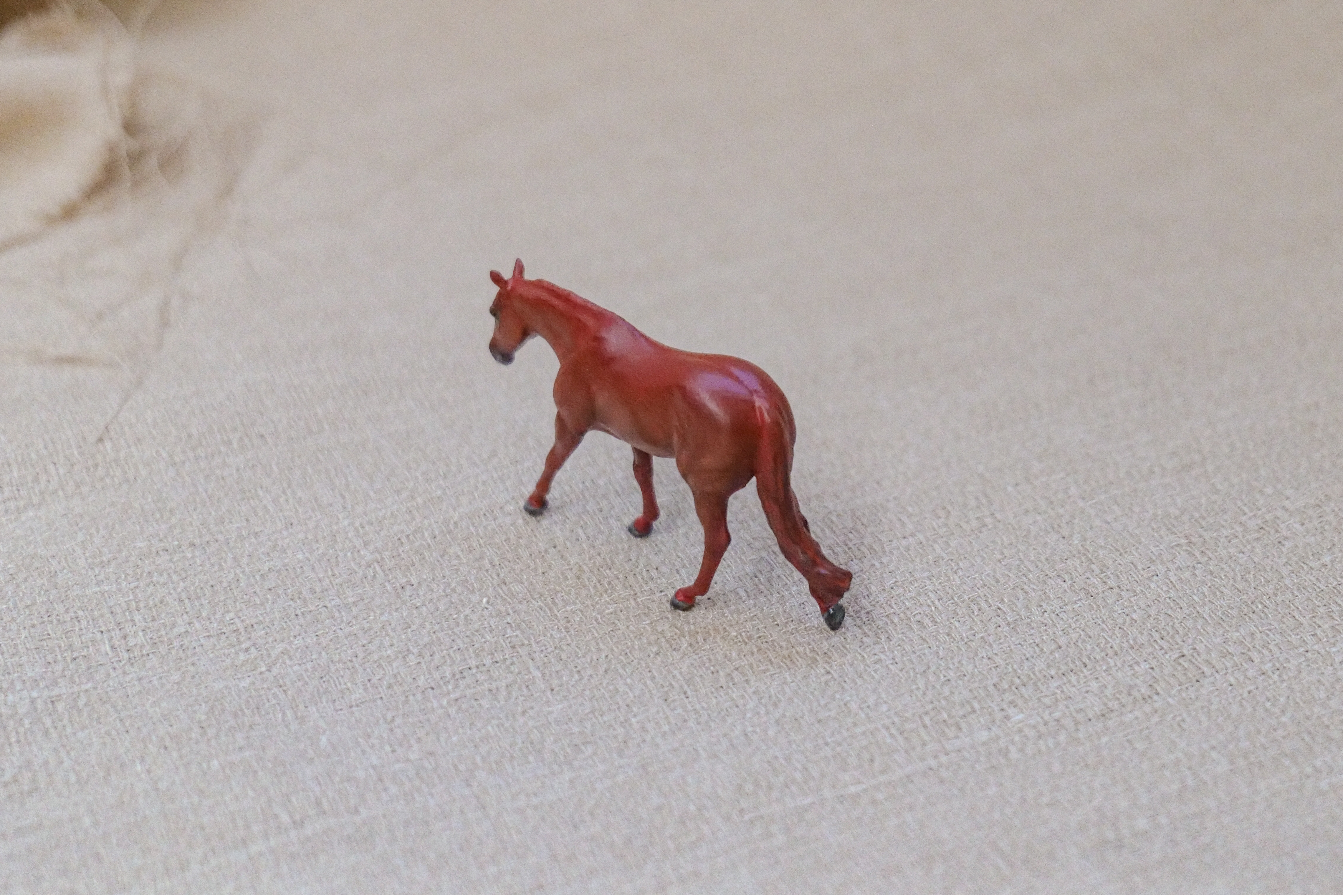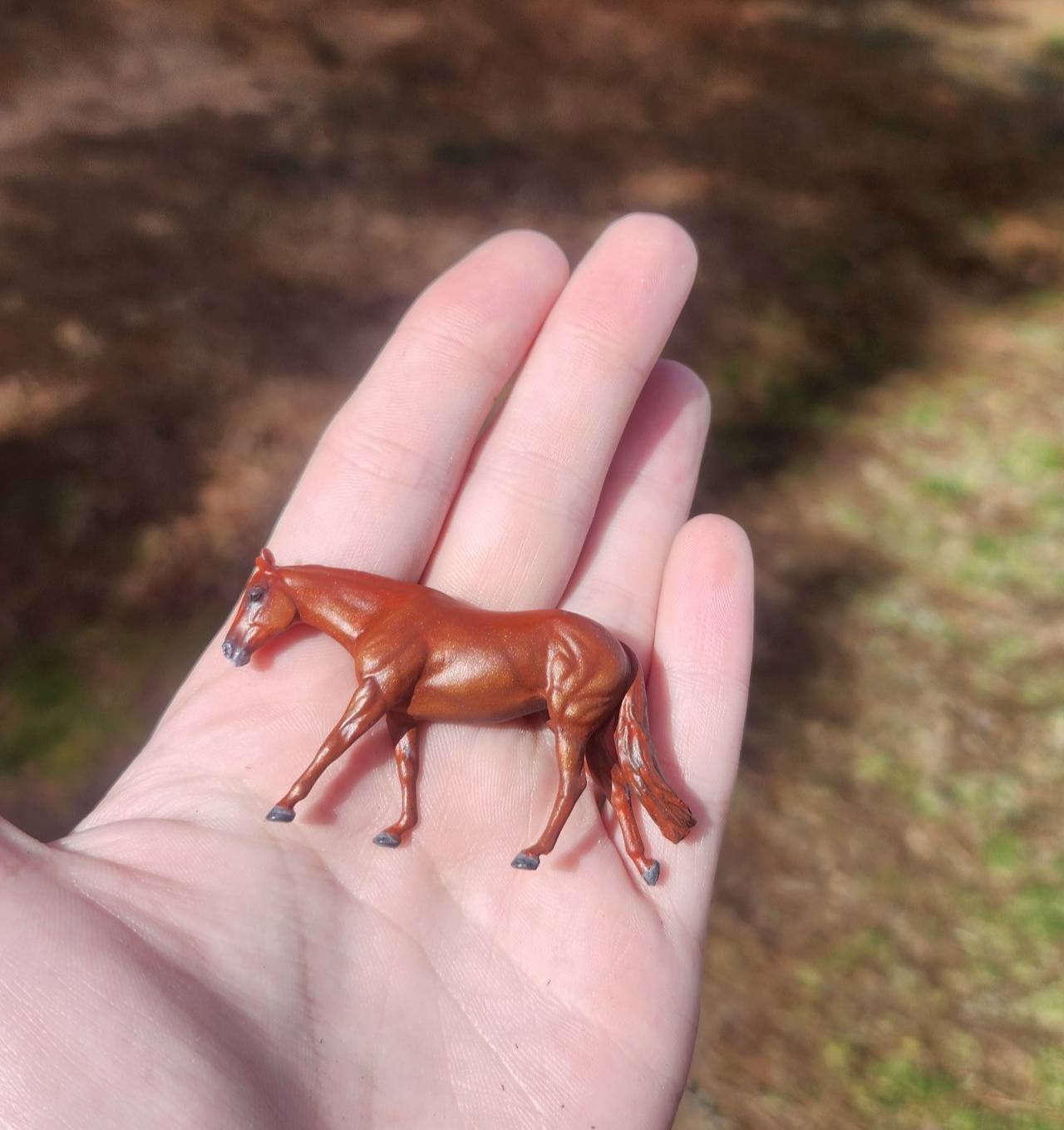 This lovely little chestnut mare started out with a broken leg and ear! After mending them, she became a beautiful red shimmery chestnut.