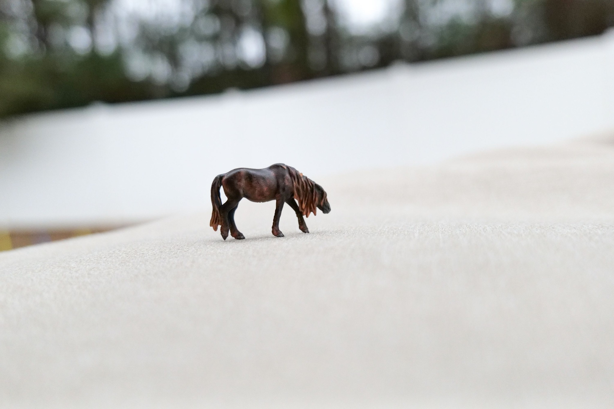 This is a Maggie Bennett micro mini Sixjay that I painted into a Banker Pony that is mid shed. This little one was a commission and was so fun to work on!